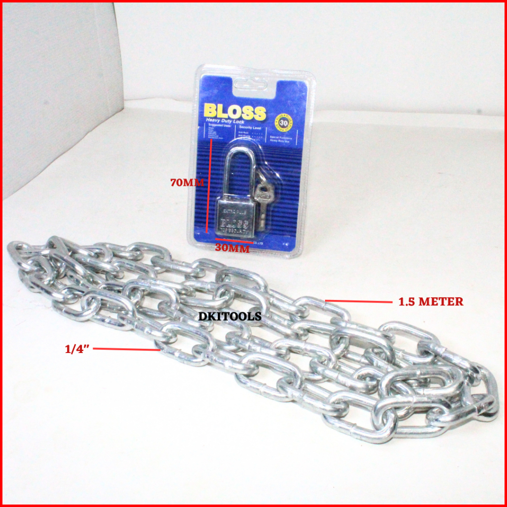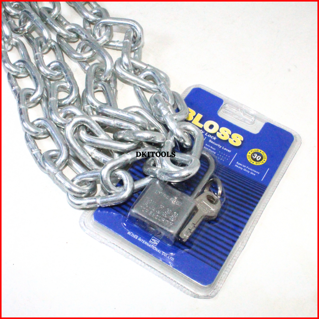 Paket Gembok 30mm Bloss Panjang Rantai 1.5 3 6 8 Meter Kuat Anti Karat Tebal 1 4