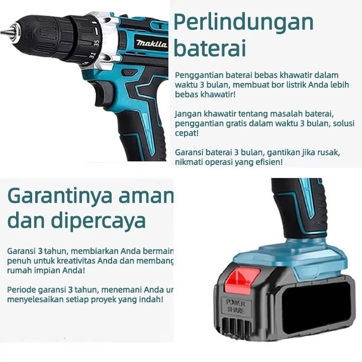 MAKlTA 766V Mesin bor 2baterai cas 10mm bor listrik Tangan Cordless murah bor tangan baterai besi tembok Beton kayu - Co