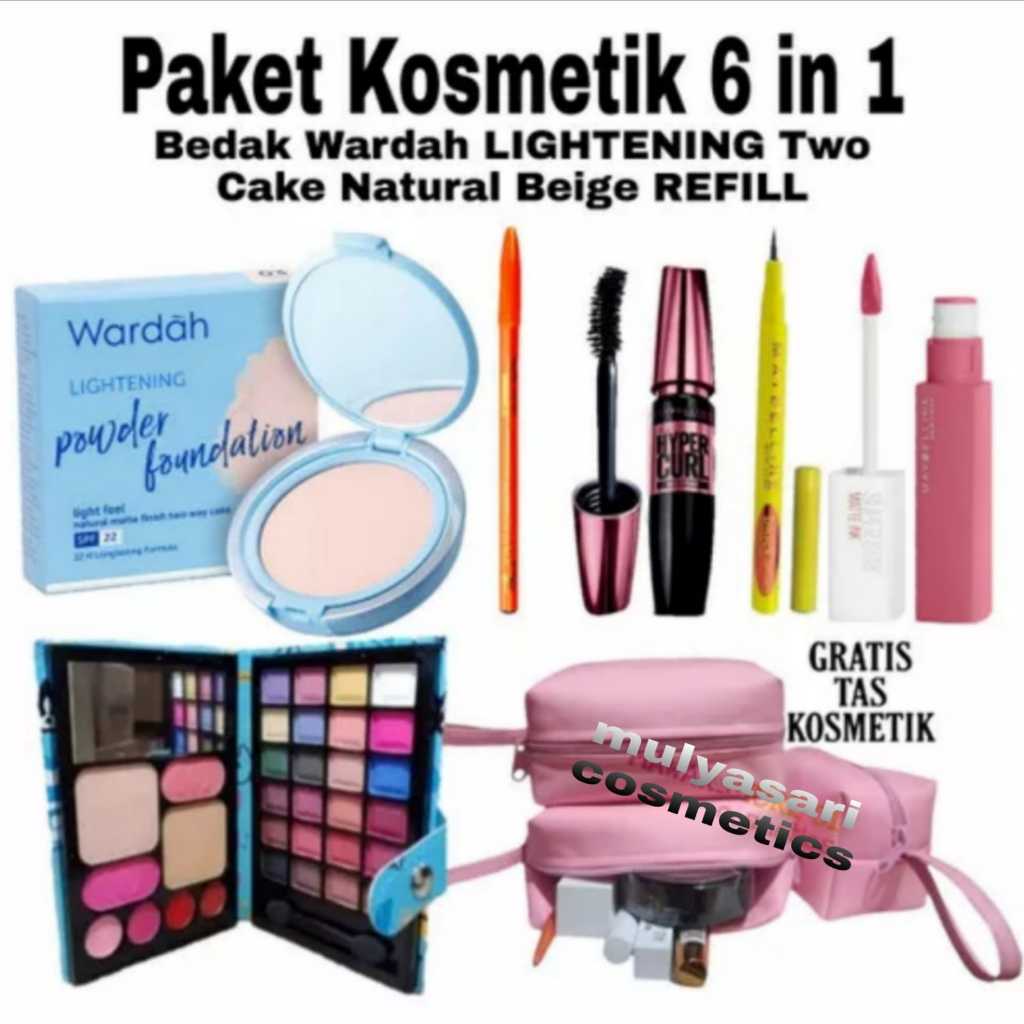 Paket Makeup 9 In 1 Wardah Lightening Powder Foundation / Paket Kosmetik Bedak Wardah Varian Super Lengkap Komplit Murah