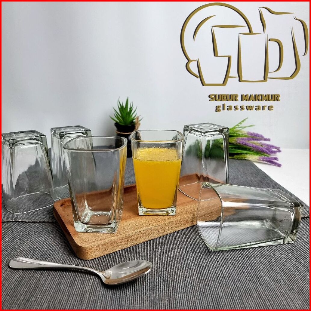6 Pcs Gelas Tumbler Kaca Persegi 220ml Bbc Tb-09 Sq F . Glass Beling Kopi Teh Air
