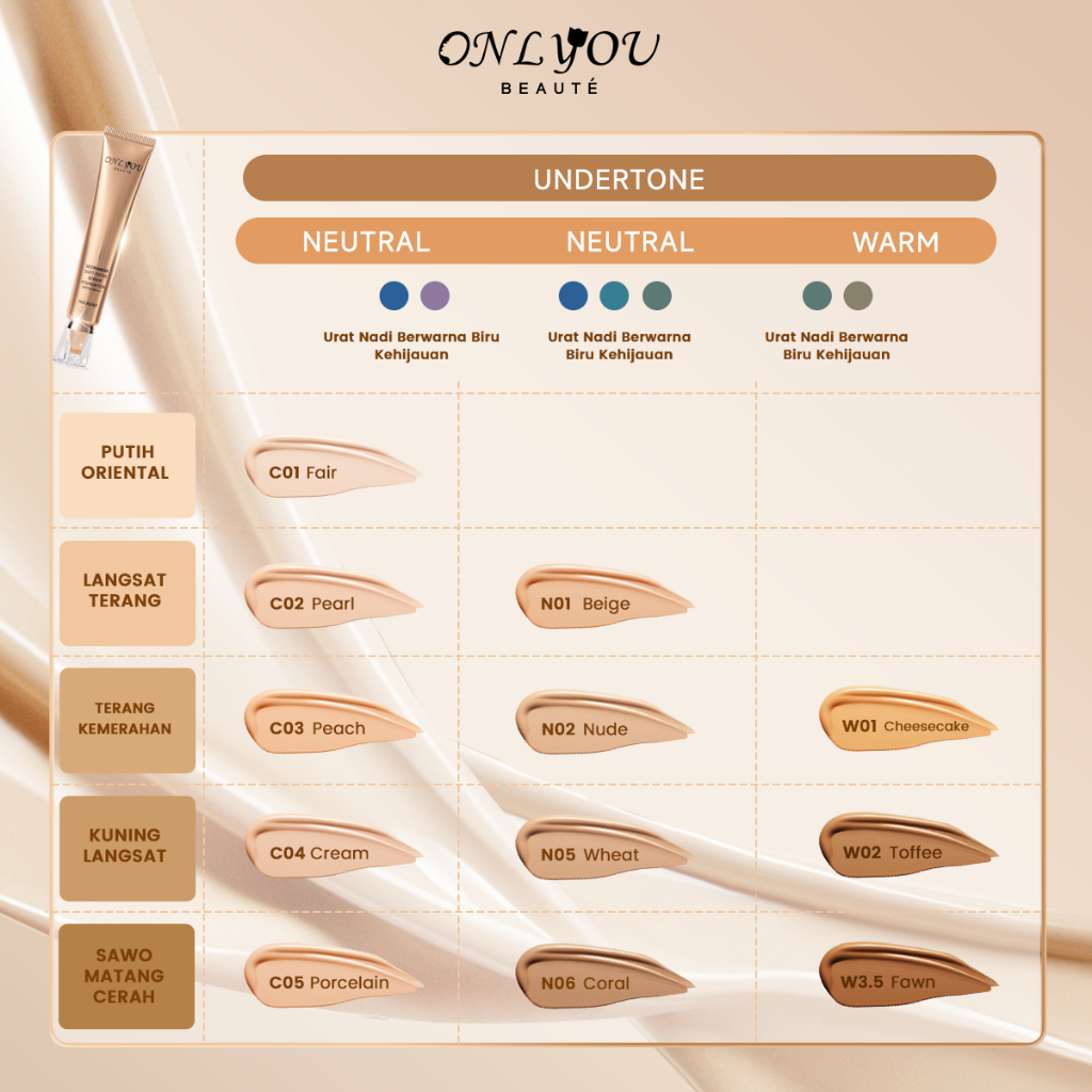 2Pcs C01(FAIR), 2Pcs C01(FAIR)-FS, 2Pcs C02(PEARL), 2Pcs C03(PEACH), 2Pcs C04(CREAM), 2Pcs C05(PORCELAIN), 2Pcs N01(BEIGE), 2Pcs N02(NUDE), 2Pcs N05(WHEAT), 2Pcs N06(CORAL)