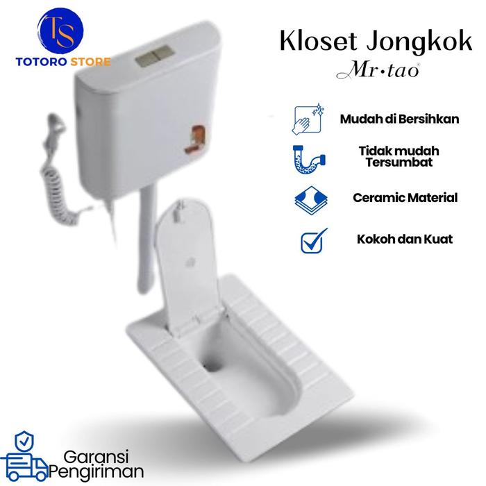 TOILET FLUSH KLOSET JONGKOK MR.TAO 1SET DENGAN PENUTUP KLOSET OTOMATIS MODEL TERBARU WARNA PUTIH HEMAT AIR JET PLASTIK W