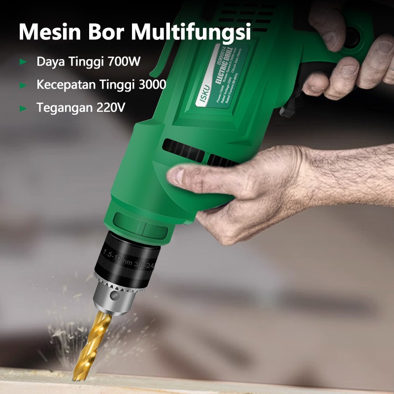 ISKU Mesin Bor Set 700W 220V Dan Mesin Gerinda Tangan