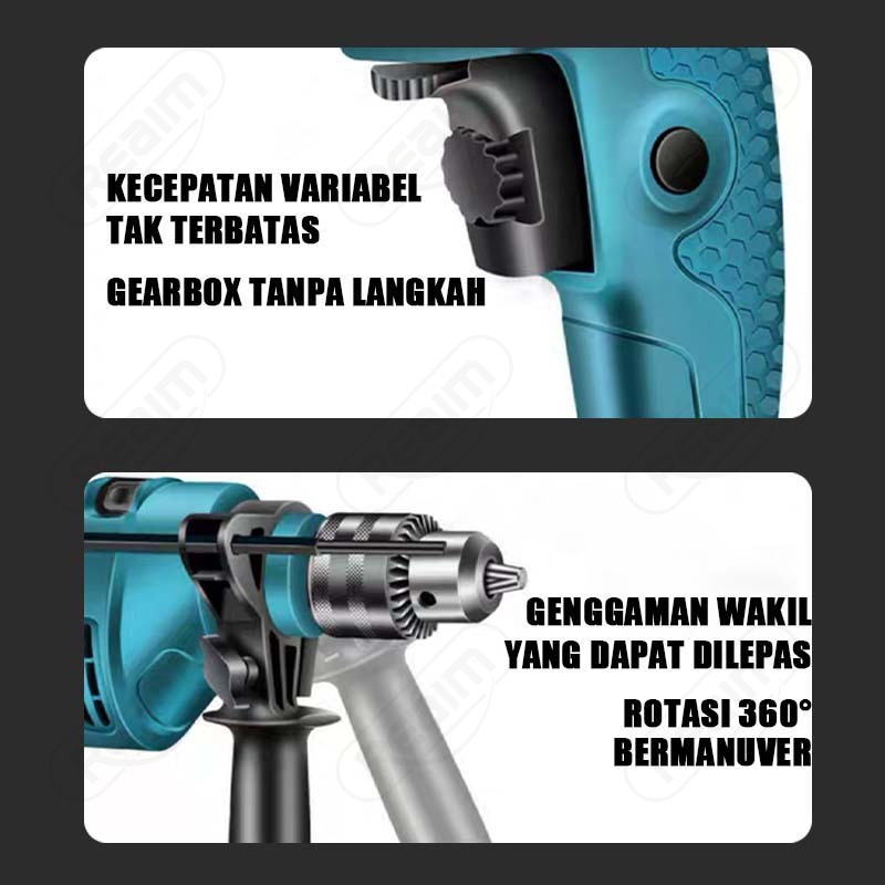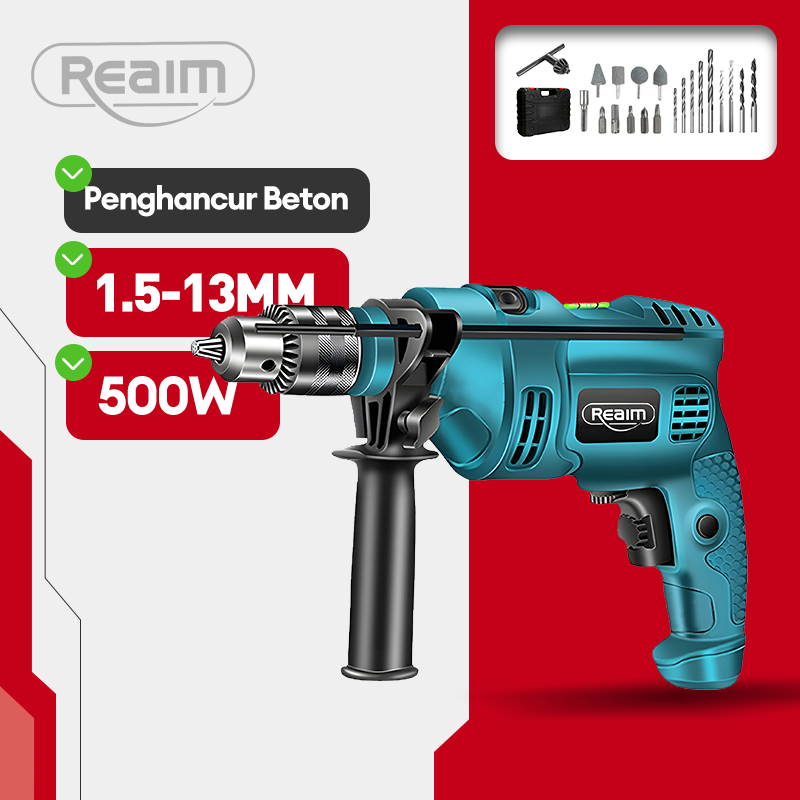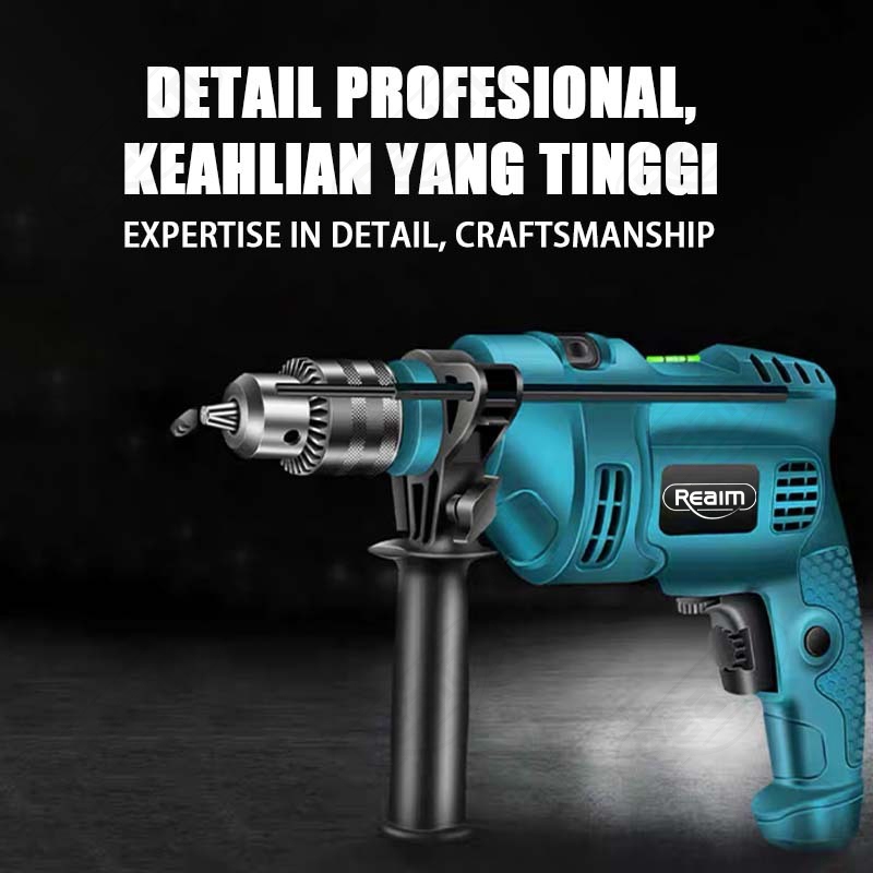 Reaim Mesin Bor Listrik 13mm Bolak Balik Electric Drill Mesin Bor Impact Drill Listrik Bor Beton Kayu Besi Tembok Bor Li