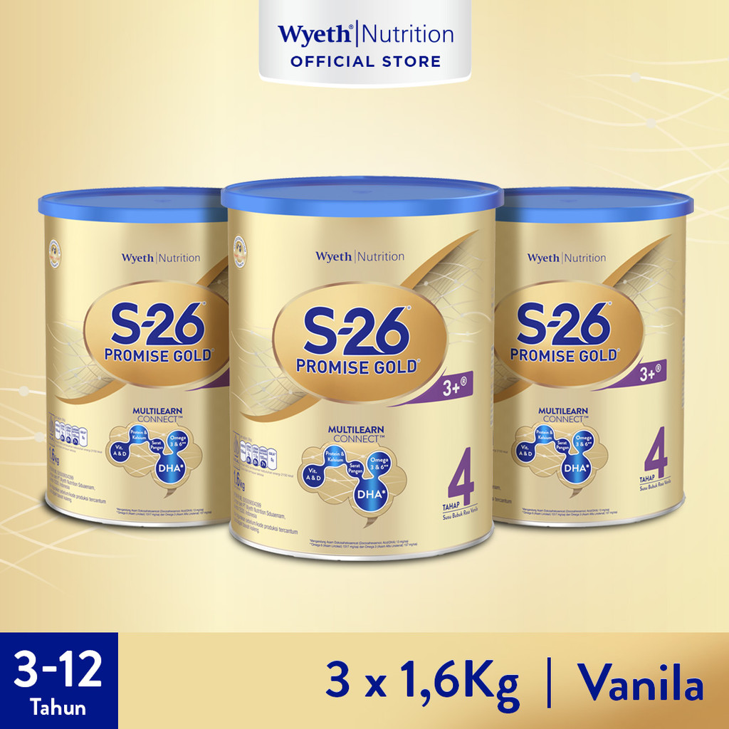 S-26 Promise Gold Tahap 4 Vanila Susu Pertumbuhan Anak Usia 3-12 Tahun Kaleng 1600Gr x 3pcs