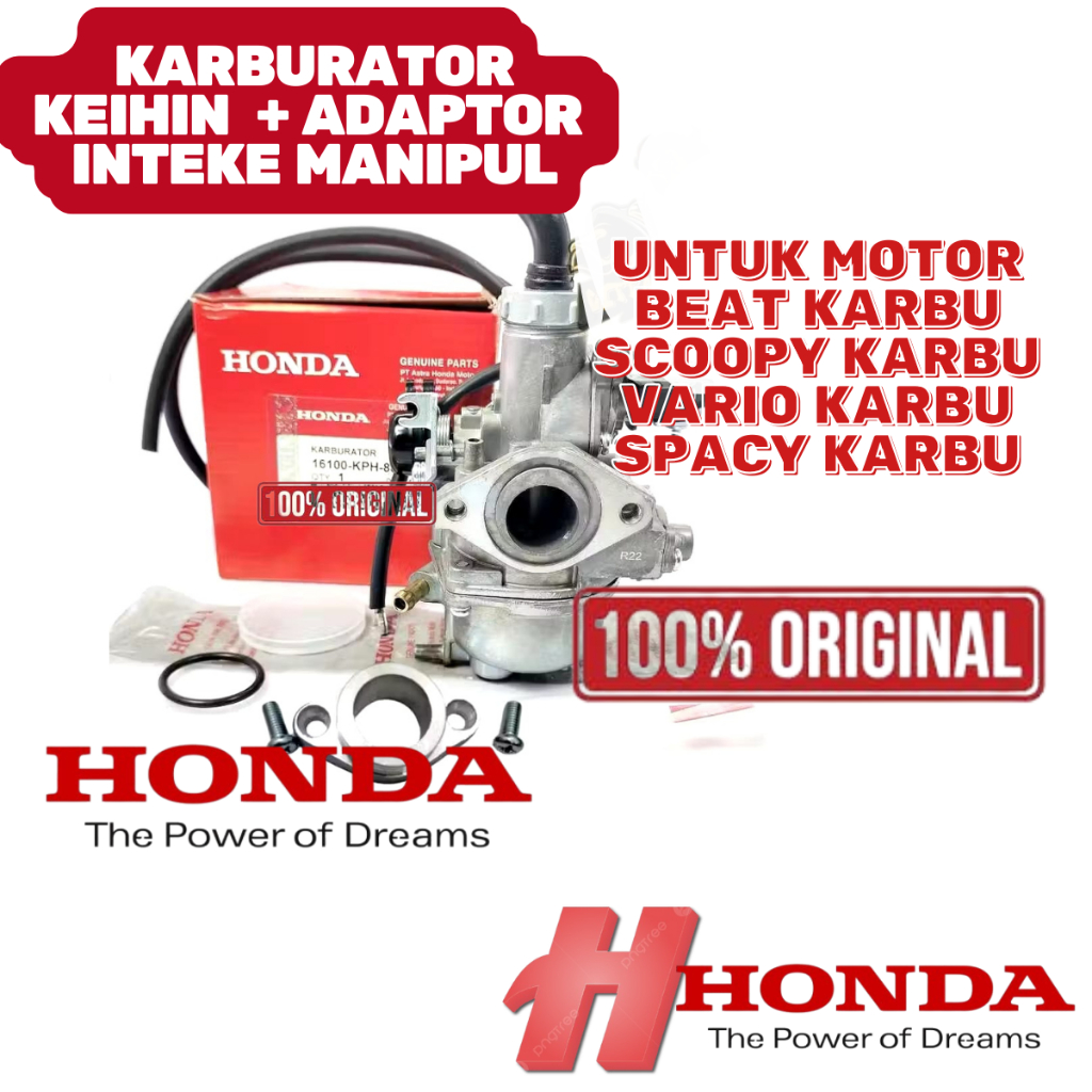 GARNSI ORIGINAL KARBURATOR SET PLUS ADAPTOR INTAK MANIPUL ASLI ORIGINAL HONDA BEAT SCOPY VARIO KARBU