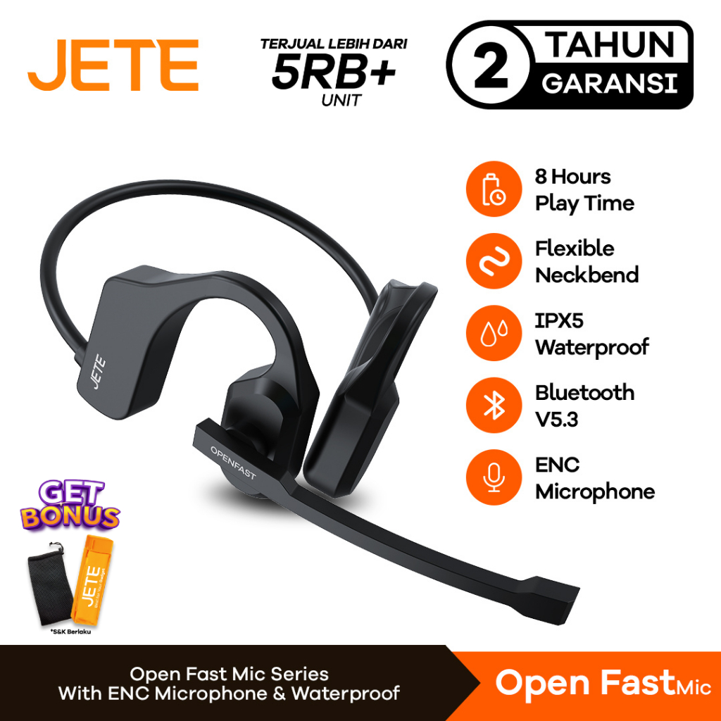 Headset Lari Open Ear Headset Bluetooth Jete Openfast Mic Series Enc + Ipx5 - Garansi 2 Tahun