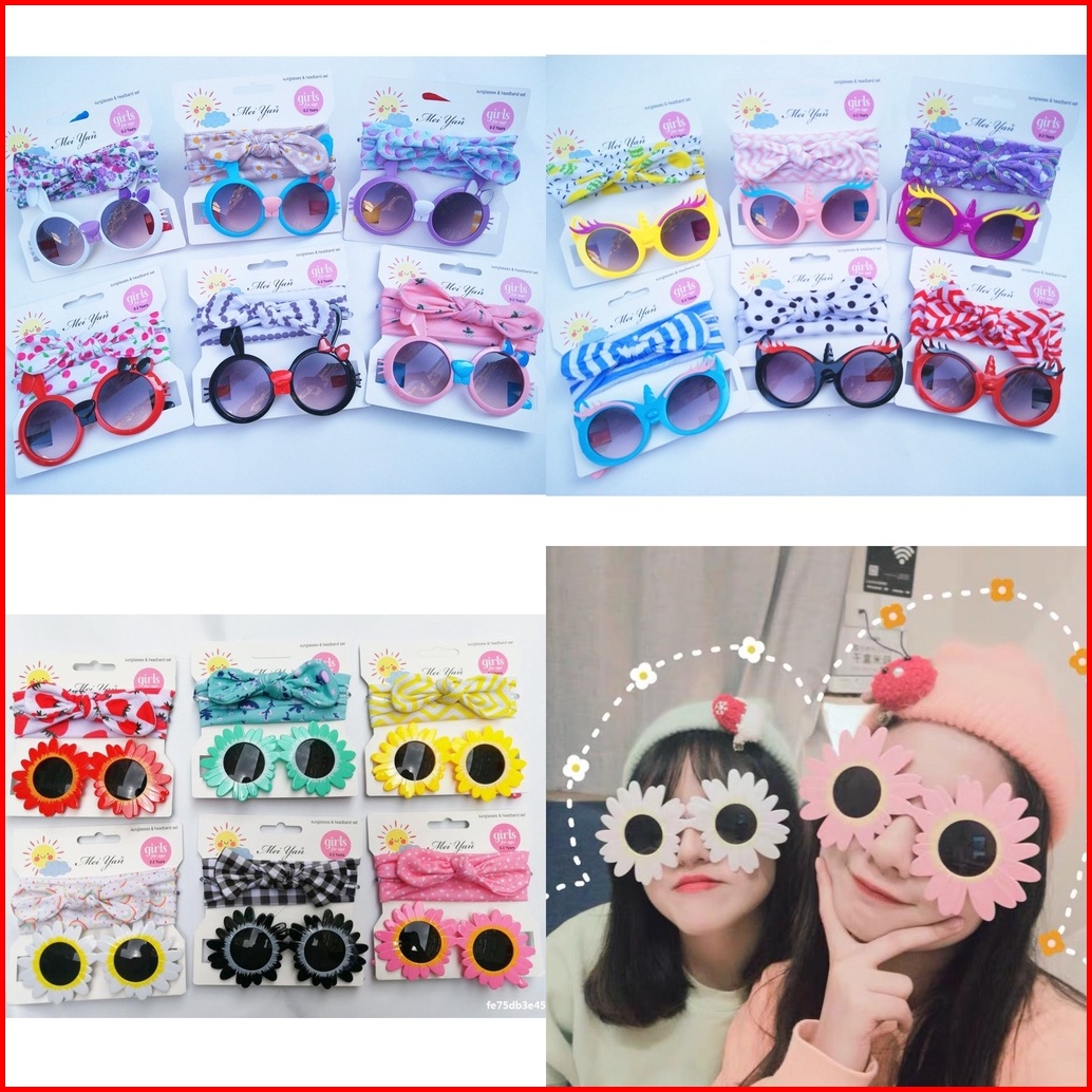 Kidsfo-10 Bandana Dan Kacamata Set Anak Perempuan 2in1