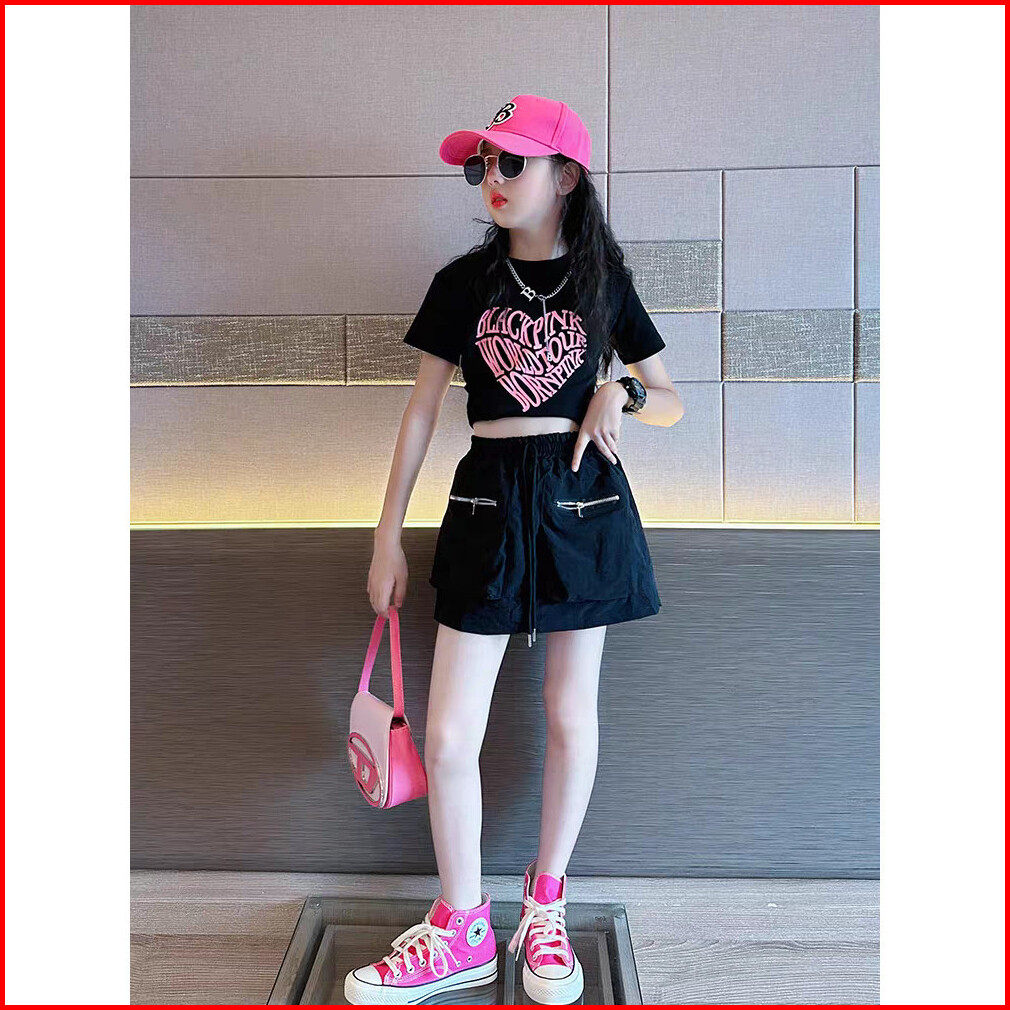 Kidsfo-17 Setelan Set Anak Besar Remaja Tanggung Blackpink Tanktop And Cargo Skirt