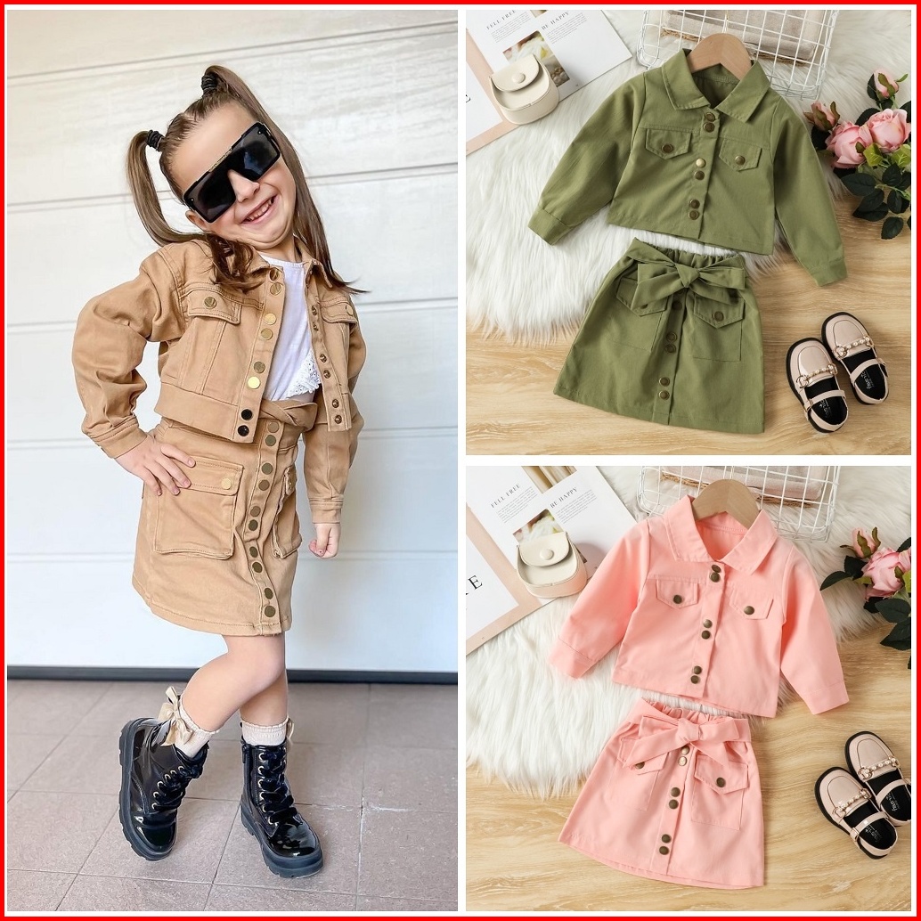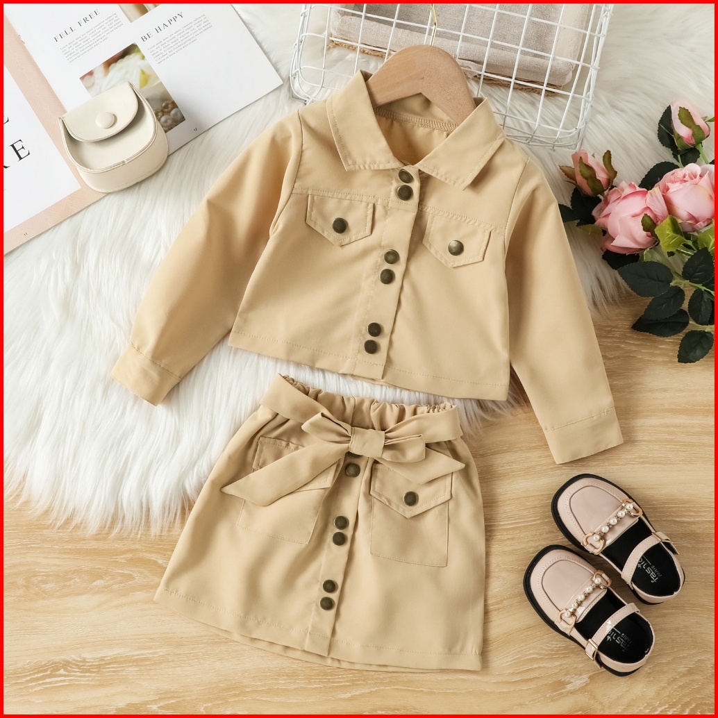 Kidsfo-20 Setelan Set Baju Anak Perempuan Korea Kemeja Rok Mini Kancing