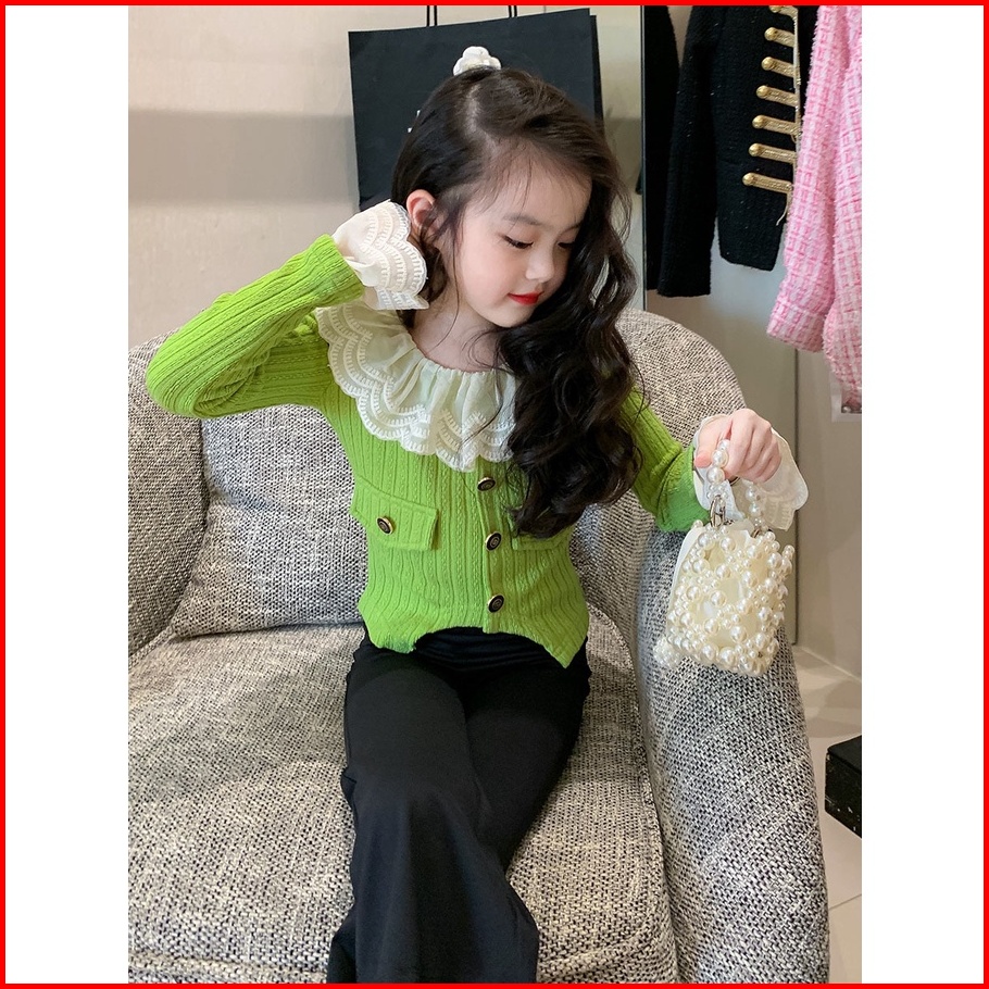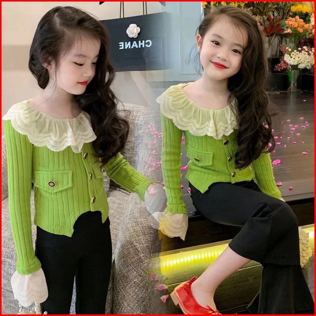 Kidsfo-88 Setelan Set Baju Anak Korea Perempuan Rajutan Knitted Shirt Pants