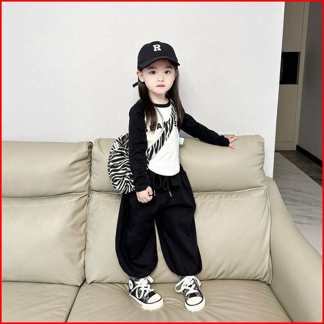 Kidsfo-30 Setelan Set Anak Perempuan Gaya Sporty Kaos Panjang Seamless Celana Jogger
