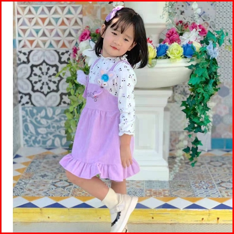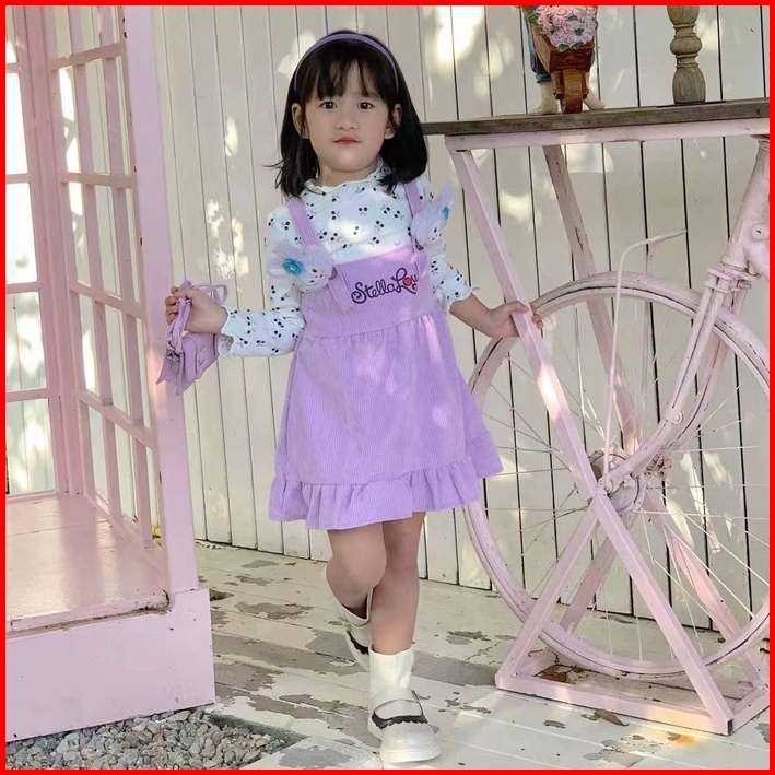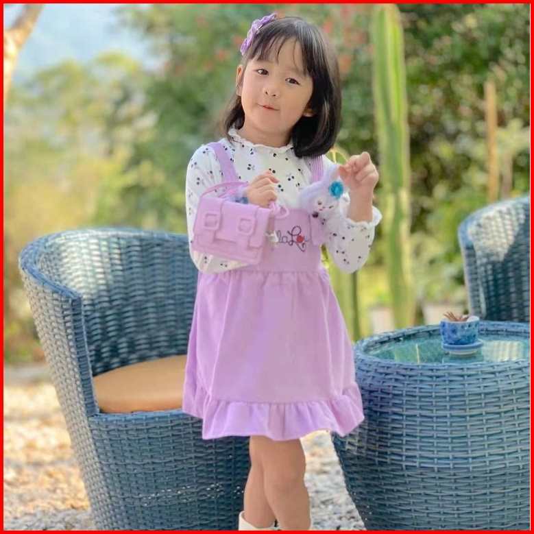 Kidsfo-102 Baju Dress Anak Korea Perempuan 2in1 Overall Ungu