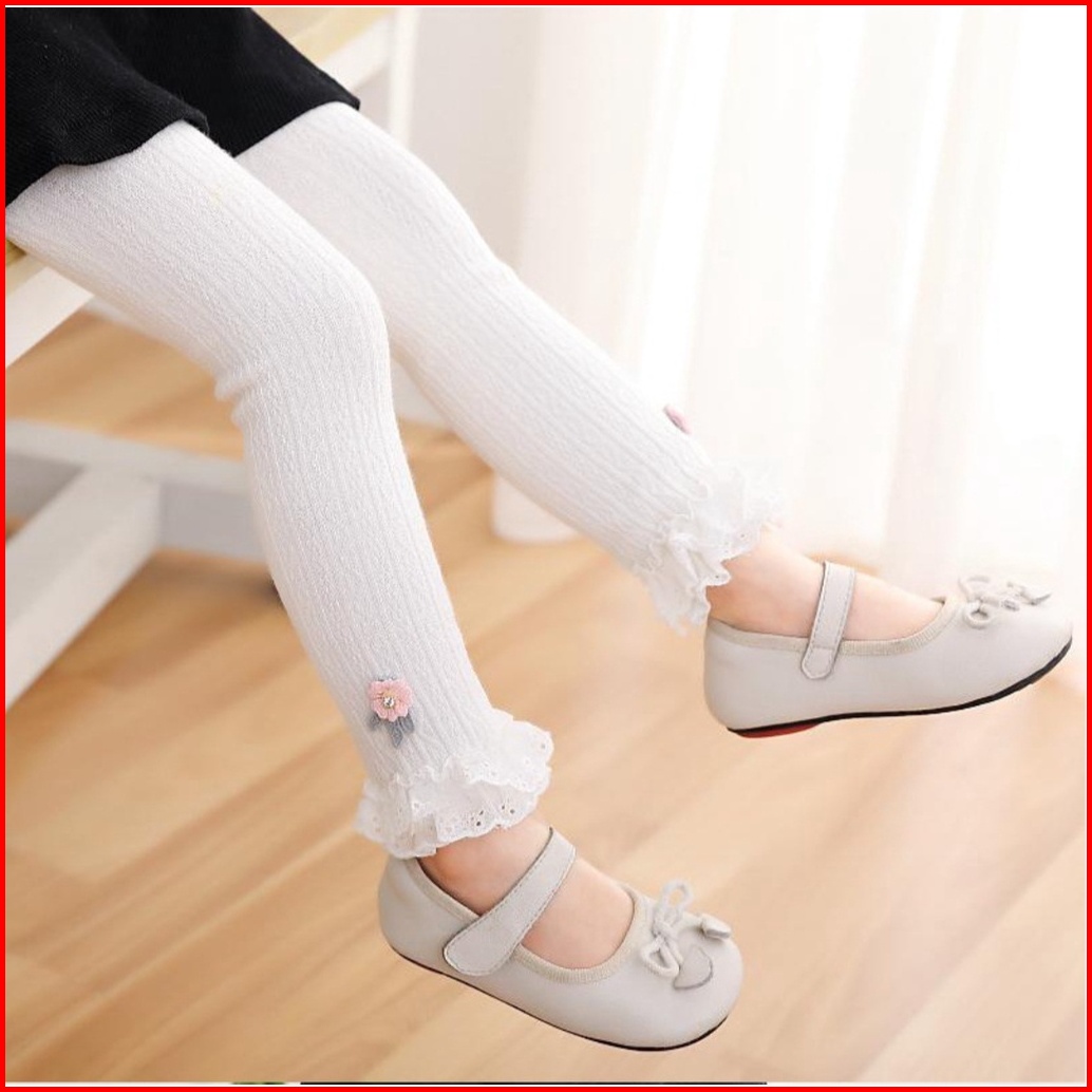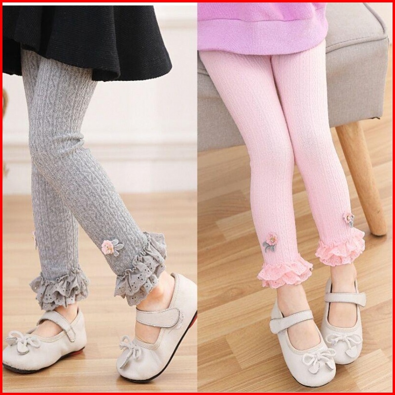 Kidsfo-18 Legging Anak Perempuan Rajut Tebal Ruffle Bonnie Bunga