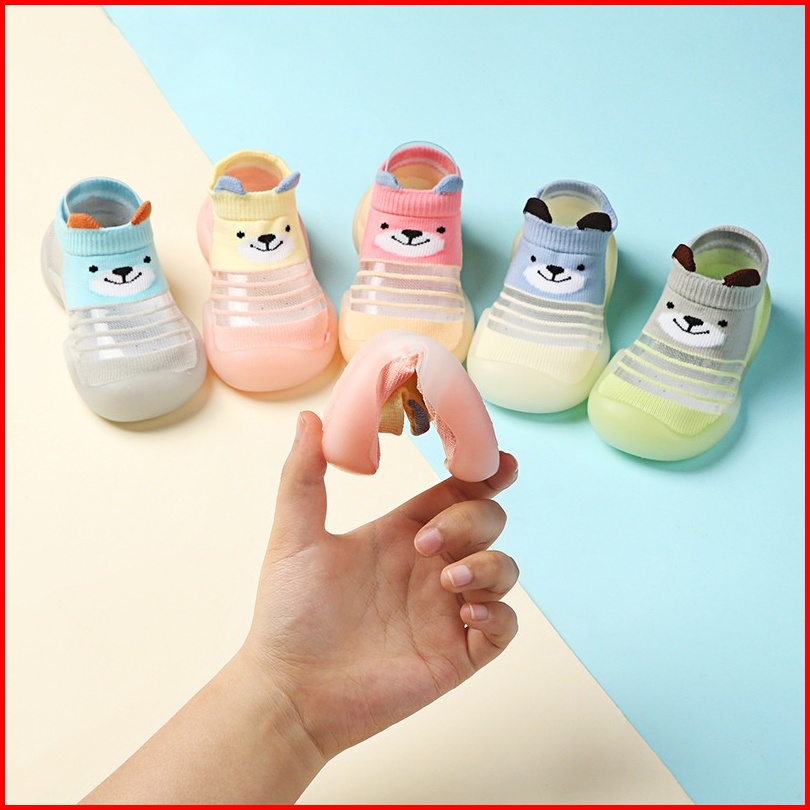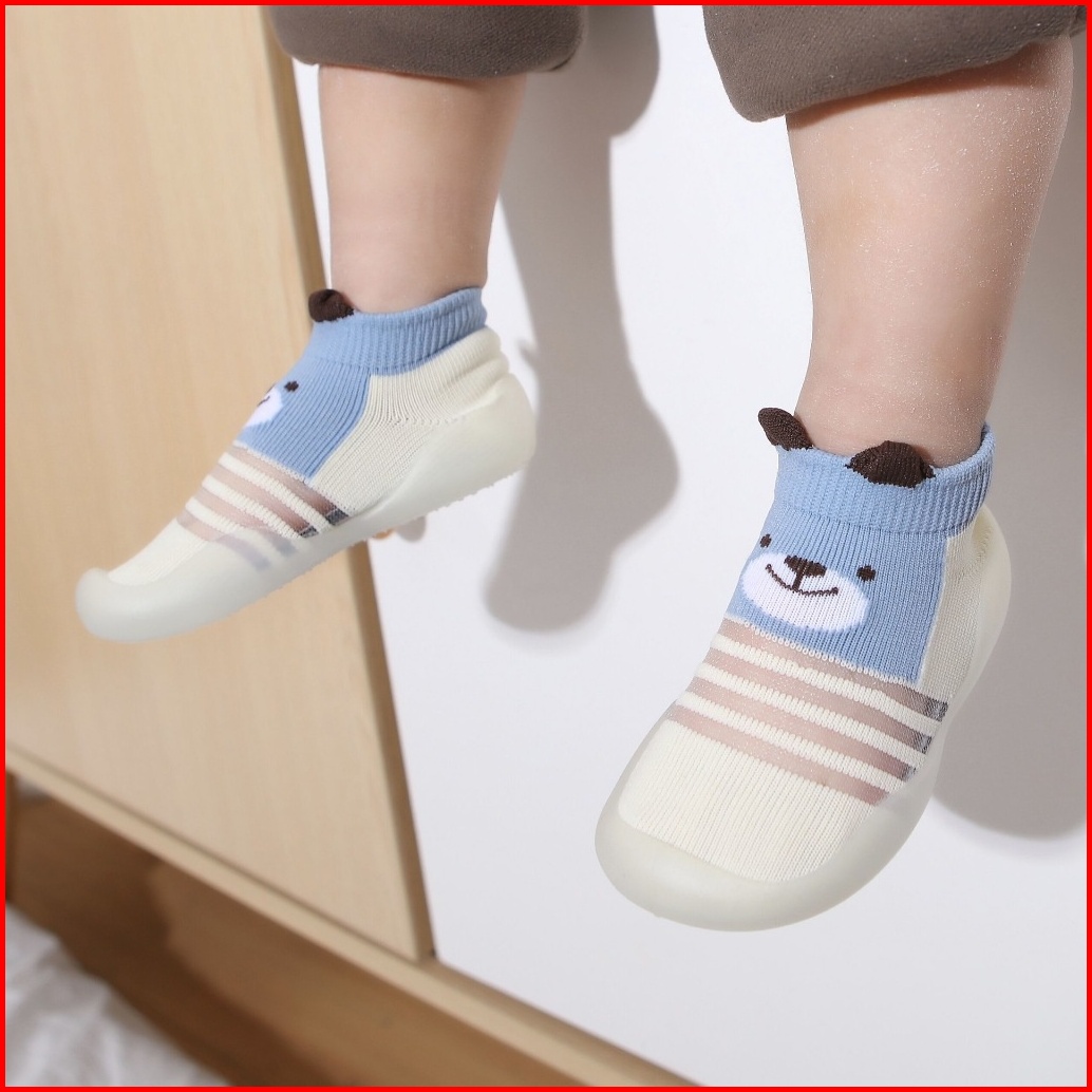 Kidsfo-9 Sepatu Bayi Prewalker Kaos Kaki Anti Slip Karakter Bergaris Transparan