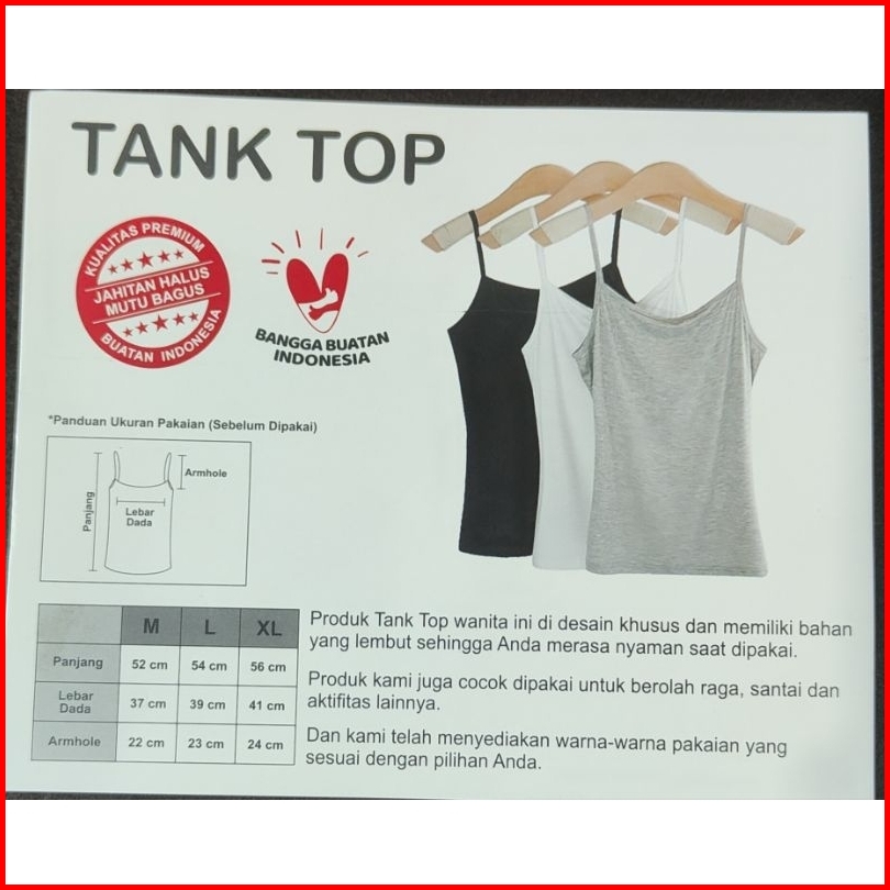 1 Pcs T20 Tanktop Premium Wanita Remaja Singlet Tali Besar Dan Tali Kecil Tangtop Brand Selusin L - Xl - Xxl