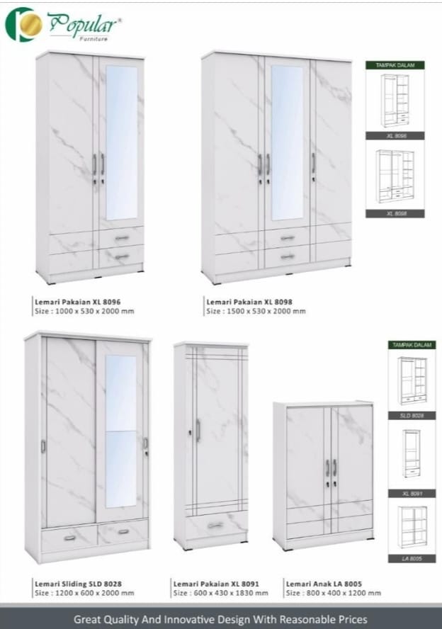 2 pintu reguler 8096 ukuran100x53x200, 2 pintu sleding sld 8028 ukuran 120x60x200
