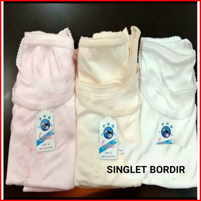 6 Pcs Kaos Dalam Wanita Polos Bordir Lusinan Singlet Wanita Phg Tangtop Murah Berkualitas