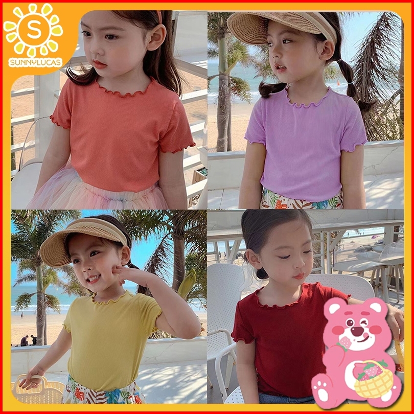 Sunny.lucas Kaus Lengan Pendek Sutra Es Rajut Bawahan Kasual Anak Perempuan Atasan Anak-anak Gaya Korea Baru Musim Panas