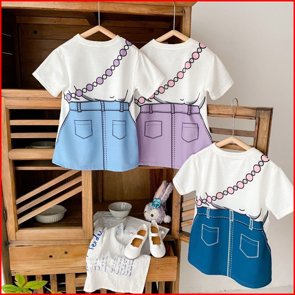 1-9 Tahun Dress Anak Perempuan Rok Anak Gaun Anak Cewek Baru Gaun Kasual Lengan Pendek Bayi Perempuan Versi Korea Kartun