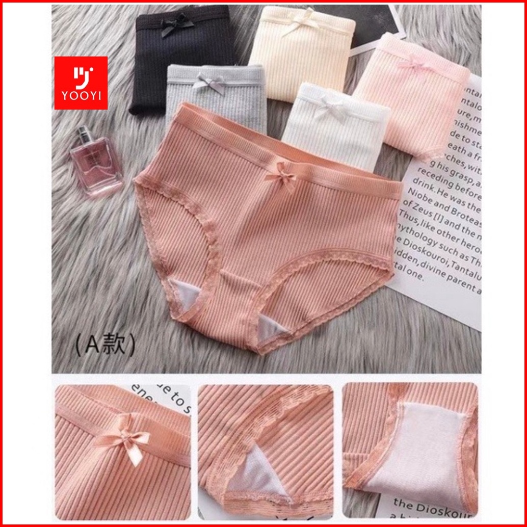 Yooyi Celana Dalam Wanita Dewasa Anti Nyeplak Sexy Jepang Cd Hot Imut Fashion Undies Polos High Quality Katun Hiasan Pit