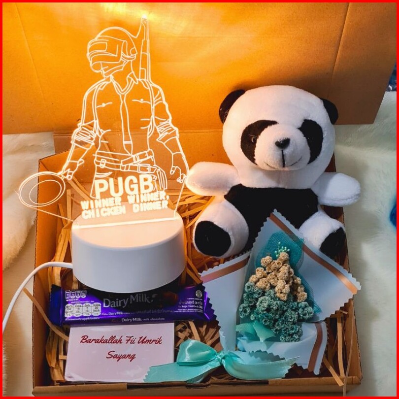 Hampers Asher Kado Cowok Gift Box Boneka Panda Buket Bunga