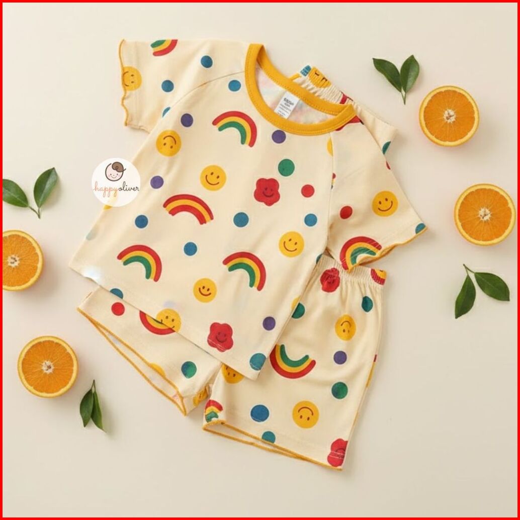 Happyoliver Piyama Rainbow Rib Lucu Anak Perempuan Bayi Perempuan Baju Tidur