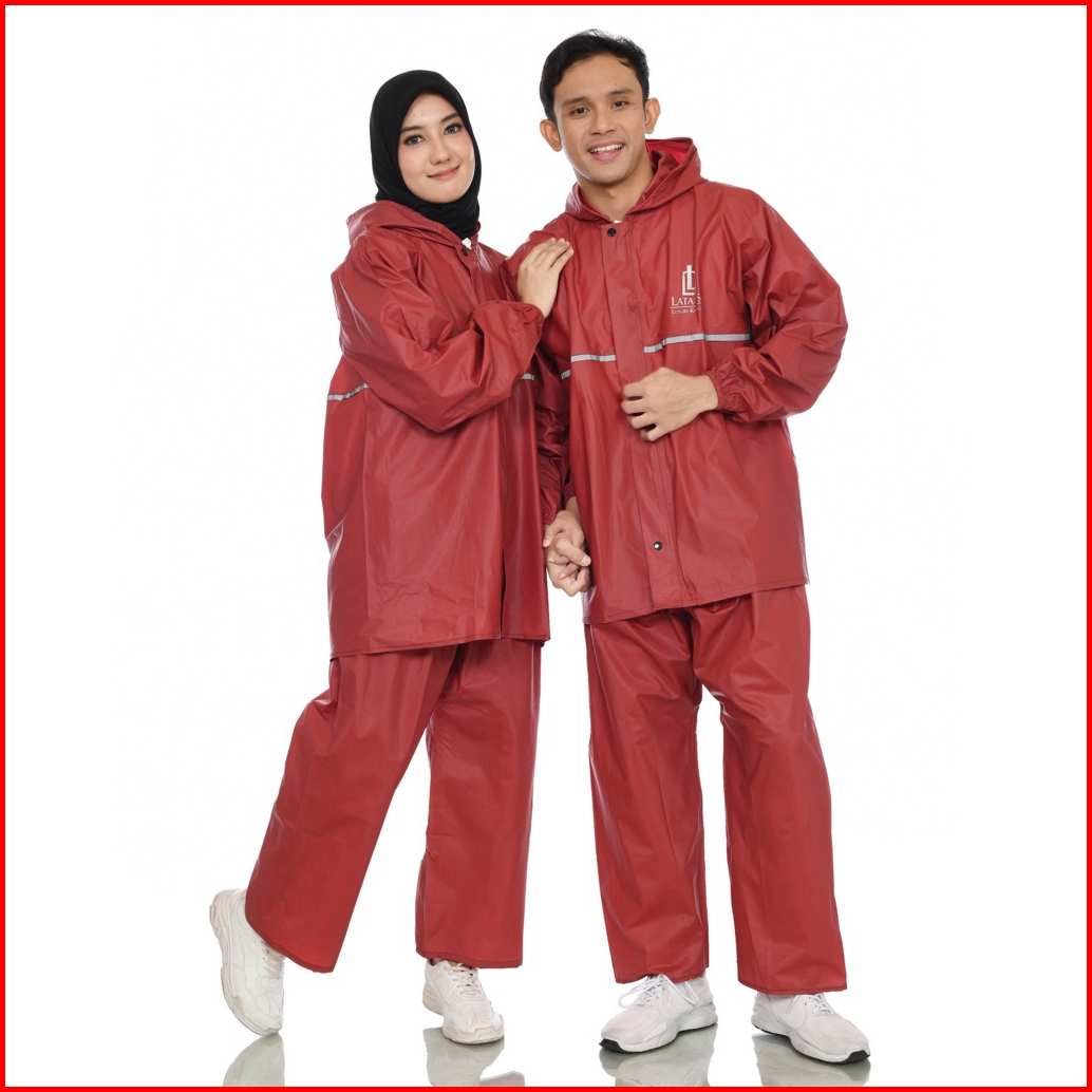 Latansa Jas Hujan Raincoat Full Seal Press Anti Rembes Pria Wanita Bahan Pvc Karet Tebal Kuat Elastis