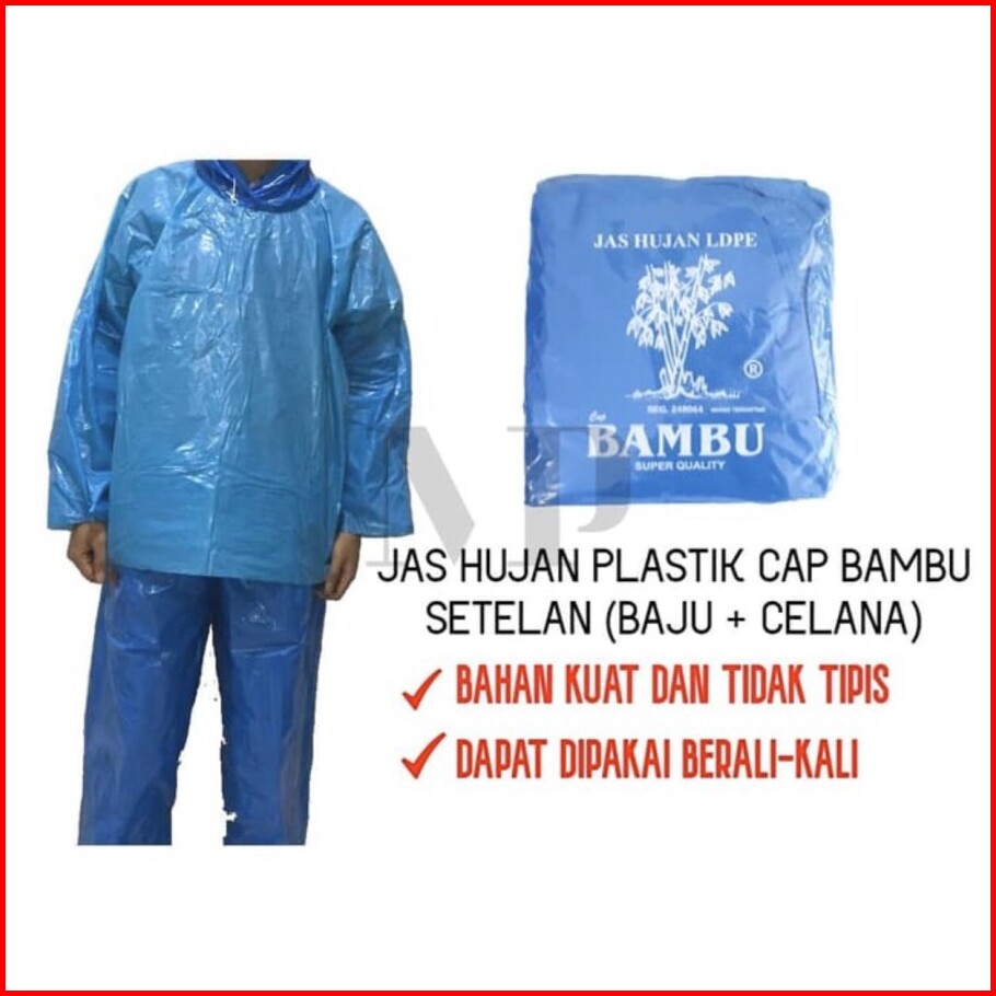 Jas Hujan Setelan Bambu Plastik Biru Hijau