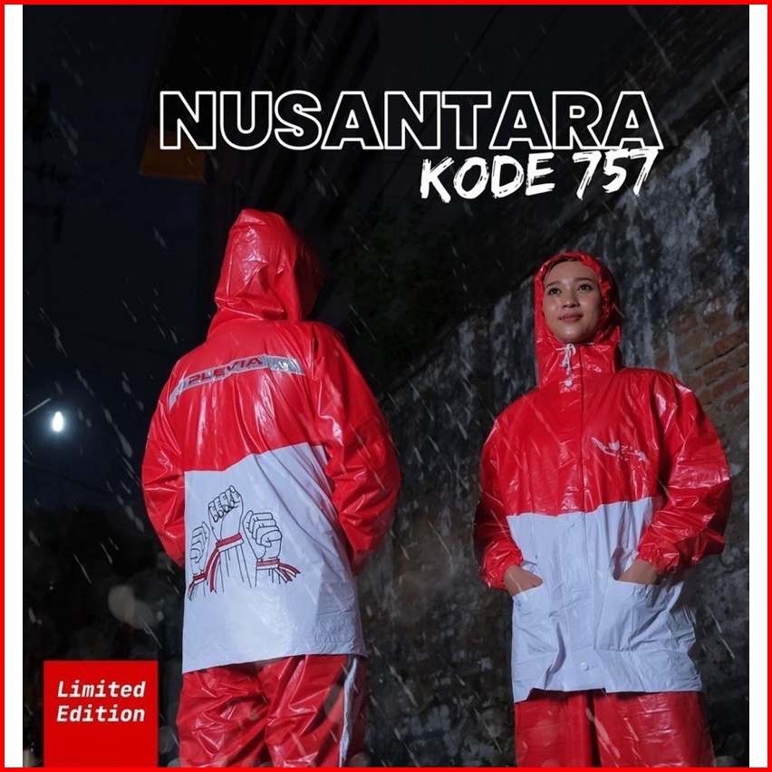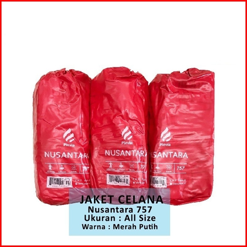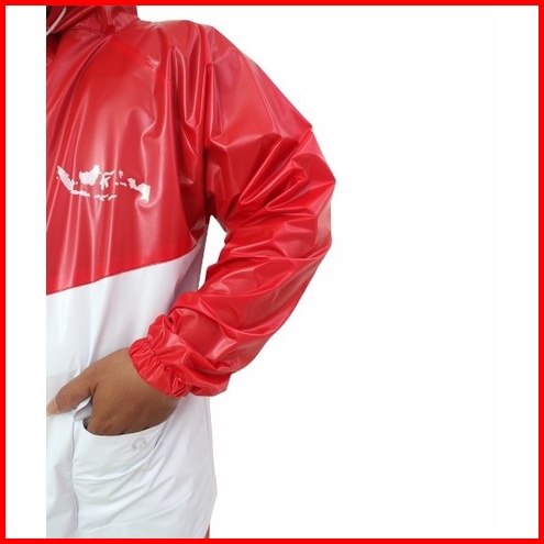 Jas Hujan Setelan Dewasa Free Pouch Bahan Tebal Premium Motif Merah Putih Plevia 757