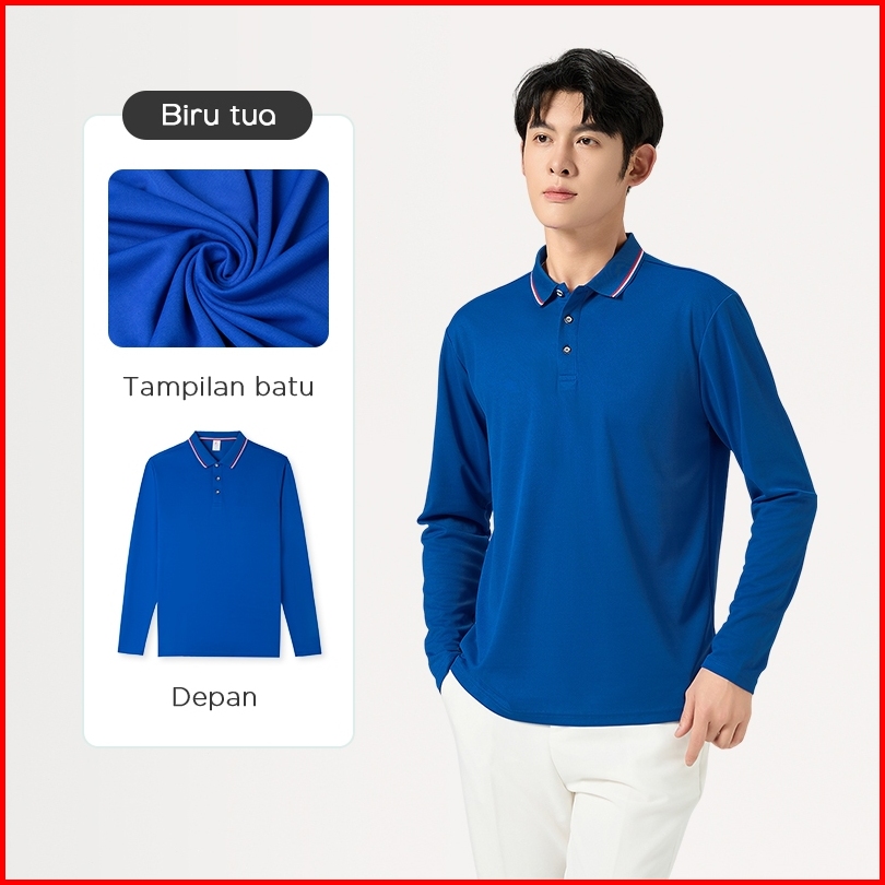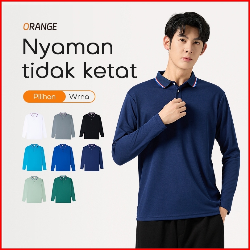 Orange Kaos Kerah Polo Shirt Polos Pria Premium Pakaian Cowok Kerah Fahsion Baju Lengan Panjang