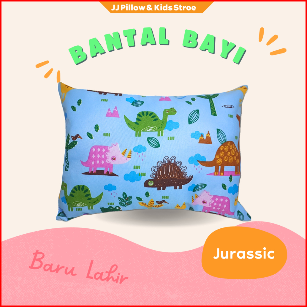 Bantal Bayi Baby Newborn 25x35cm Dengan Motif Dino Untuk Tidur Nyaman