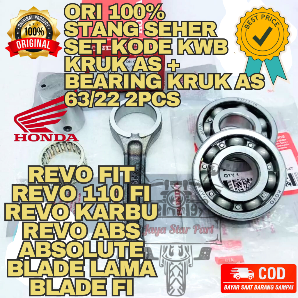 ORIGINAL 100 PERSEN STANG SEHER SET KODE KWB KRUK AS + BEARING KRUK AS 63/22 2PCS ASLI ORIGINAL HONDA REVO FIT , REVO 110 FI , REVO KARBU , REVO ABS
