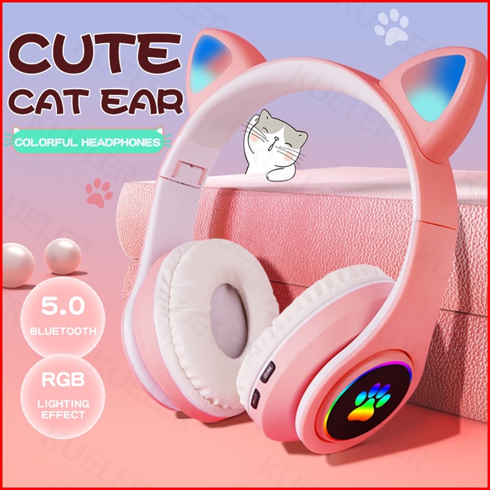 Headphone Bluetooth Telinga Lampu Kucing B39 Cat Ear Headphone On Ear Bass Bando Bloetooth Headset Wireless Lucu Anak-an