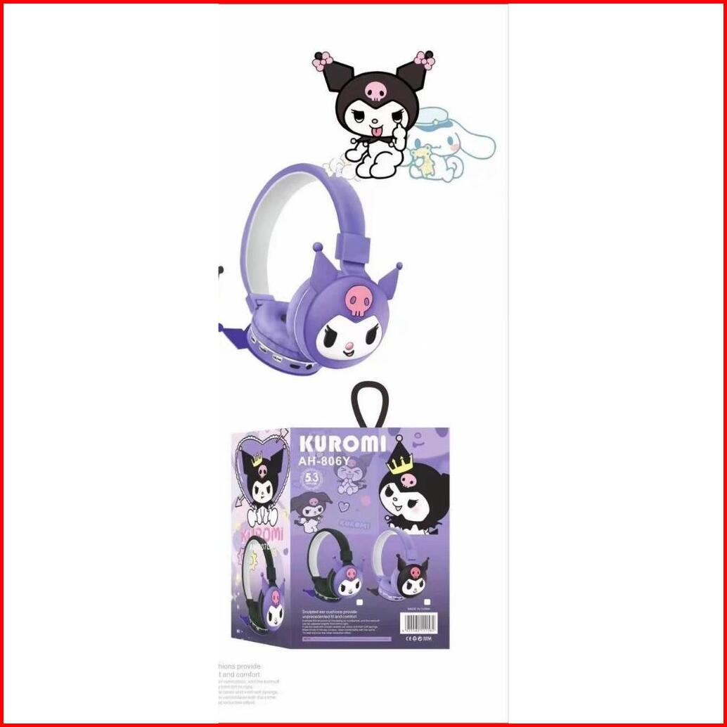 Headphone 3d Bando Kuromi Wireless Bluetooth Ah-806 Stereo Dj Disney Sanrio Cartoon Kartun Kulomi Xtra Bass Headset Hand