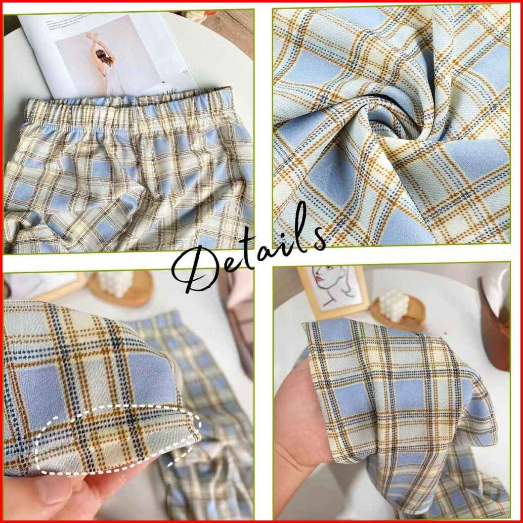 Pinky Cpg280 Celana Panjang Motif Kotak-kotak Celana Tartan Kasual Korean Style