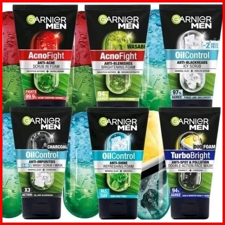 Boss Besar Garnier Men Facial Foam Acno Fight Scrub - Wasabi Turbolight Oil Control Brightening Facial Foam 100ml