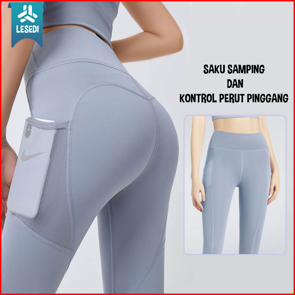 Lesedi Celana Legging Highwaist Dengan Saku Sport Yoga Celana Senam Dan Training Gym Lgs09