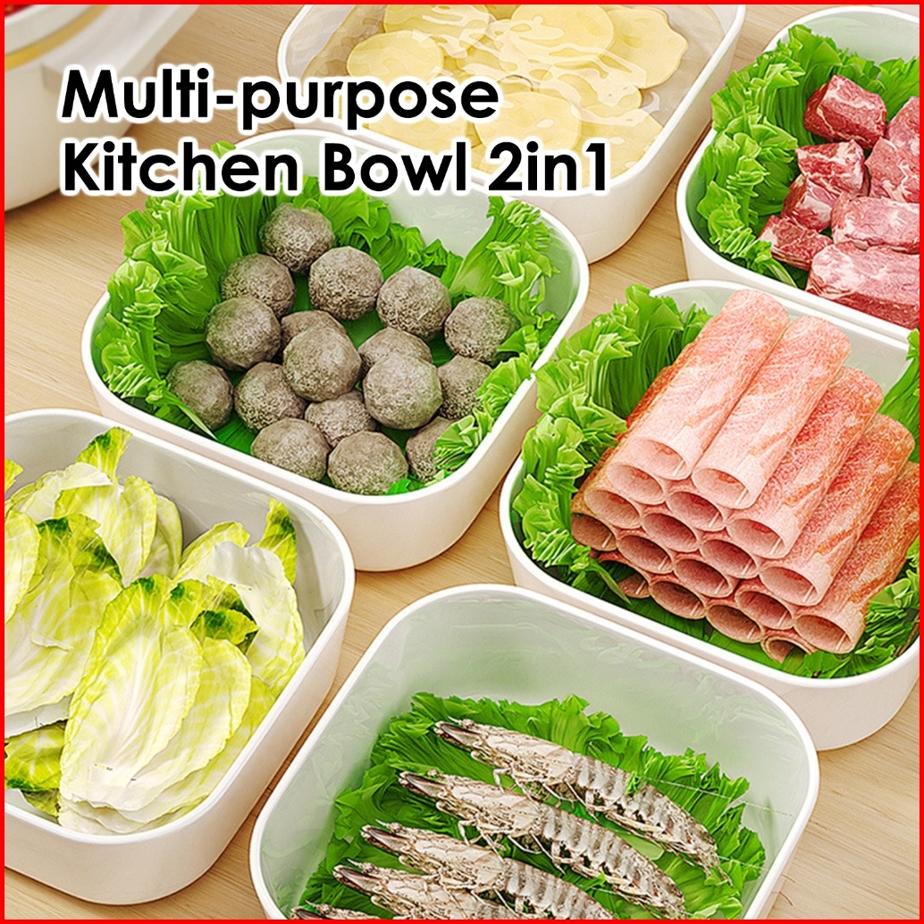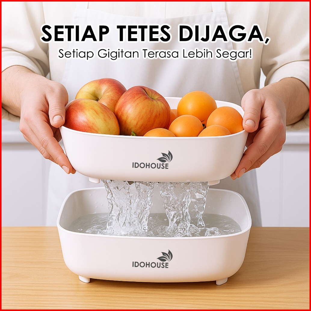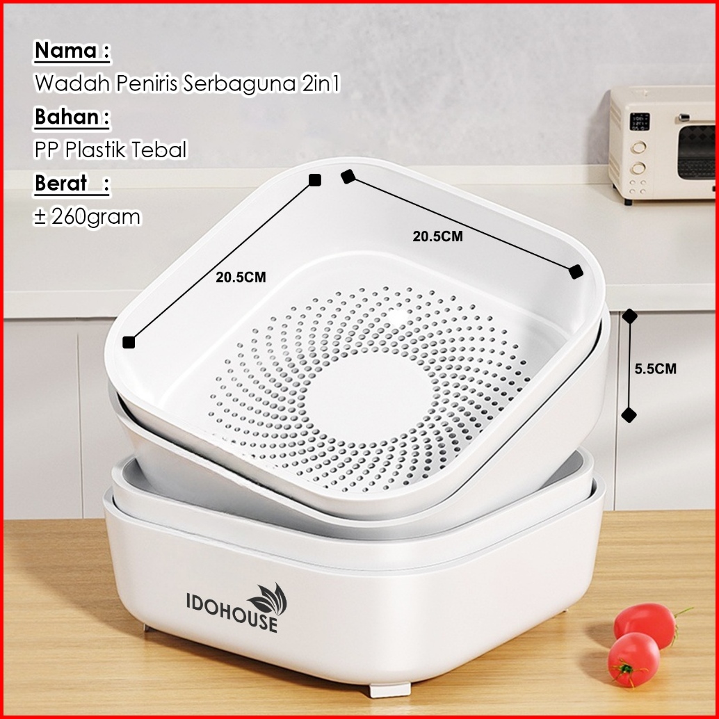 Wadah Peniris 2in1 Serbaguna Tempat Cuci Buah Sayur Double Layer Saringan Dapur Estetik Lb-d04b