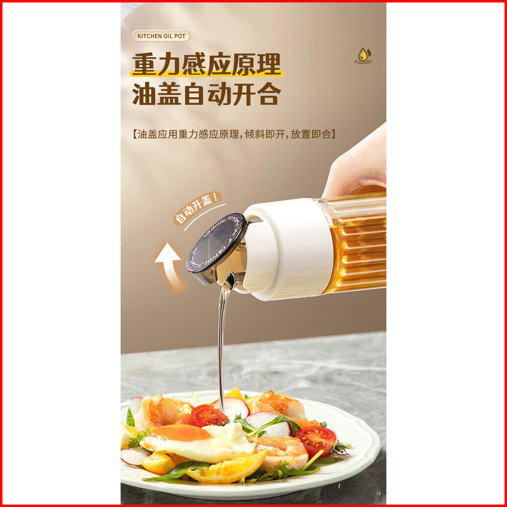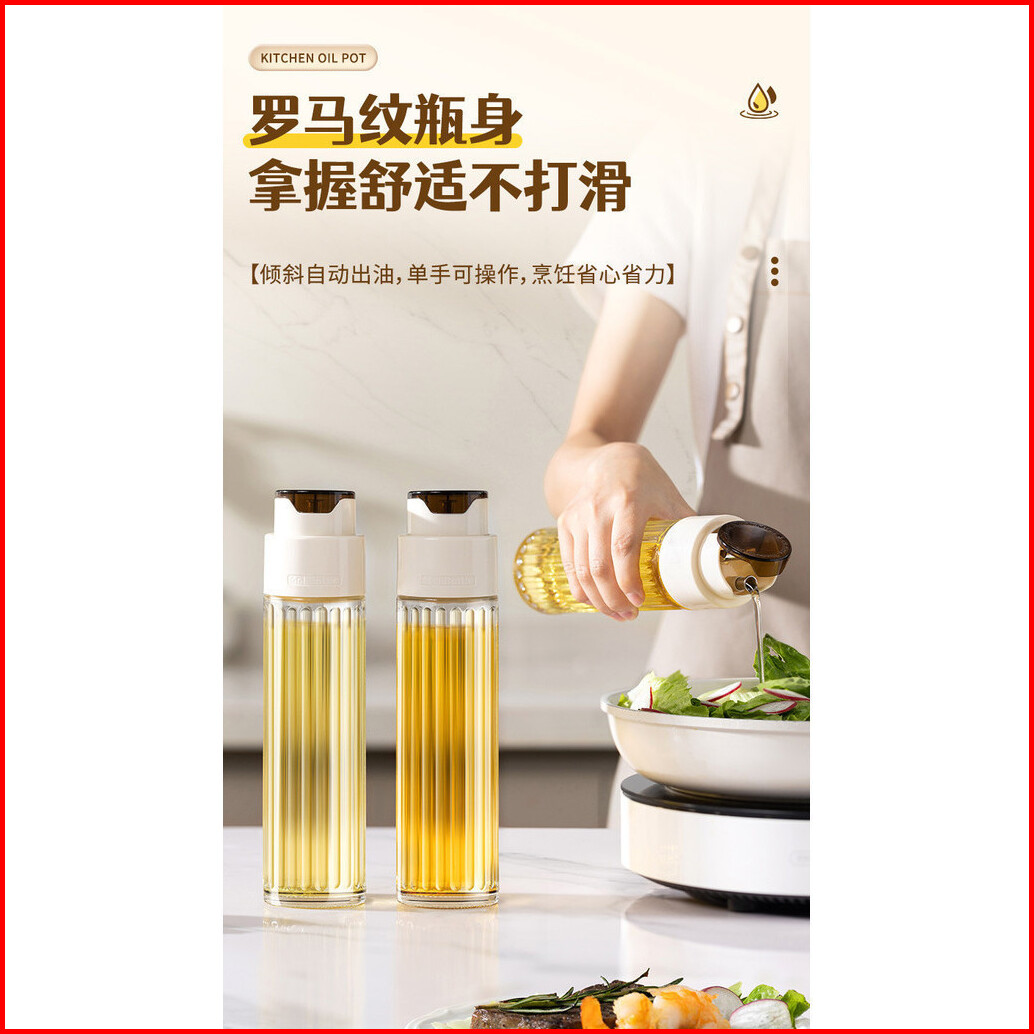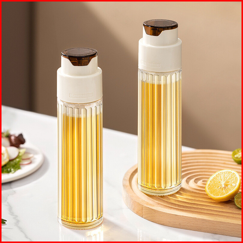Botol Minyak Kaca Tutup Otomatis Model Tinggi Bergaris Tempat Penyimpanan Kecap Saus