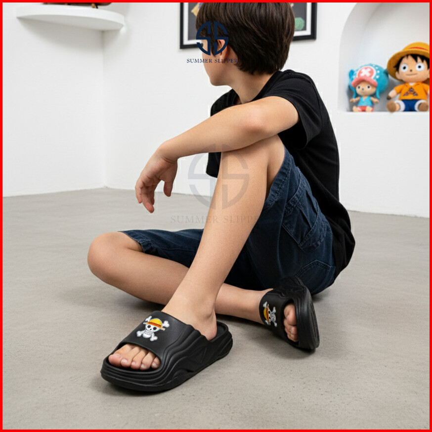 Ss Sandal Selop Slip On Sendal Anak Cowok One Piece Luffy Topi Jerami Manga Anti Licin Size 24-40