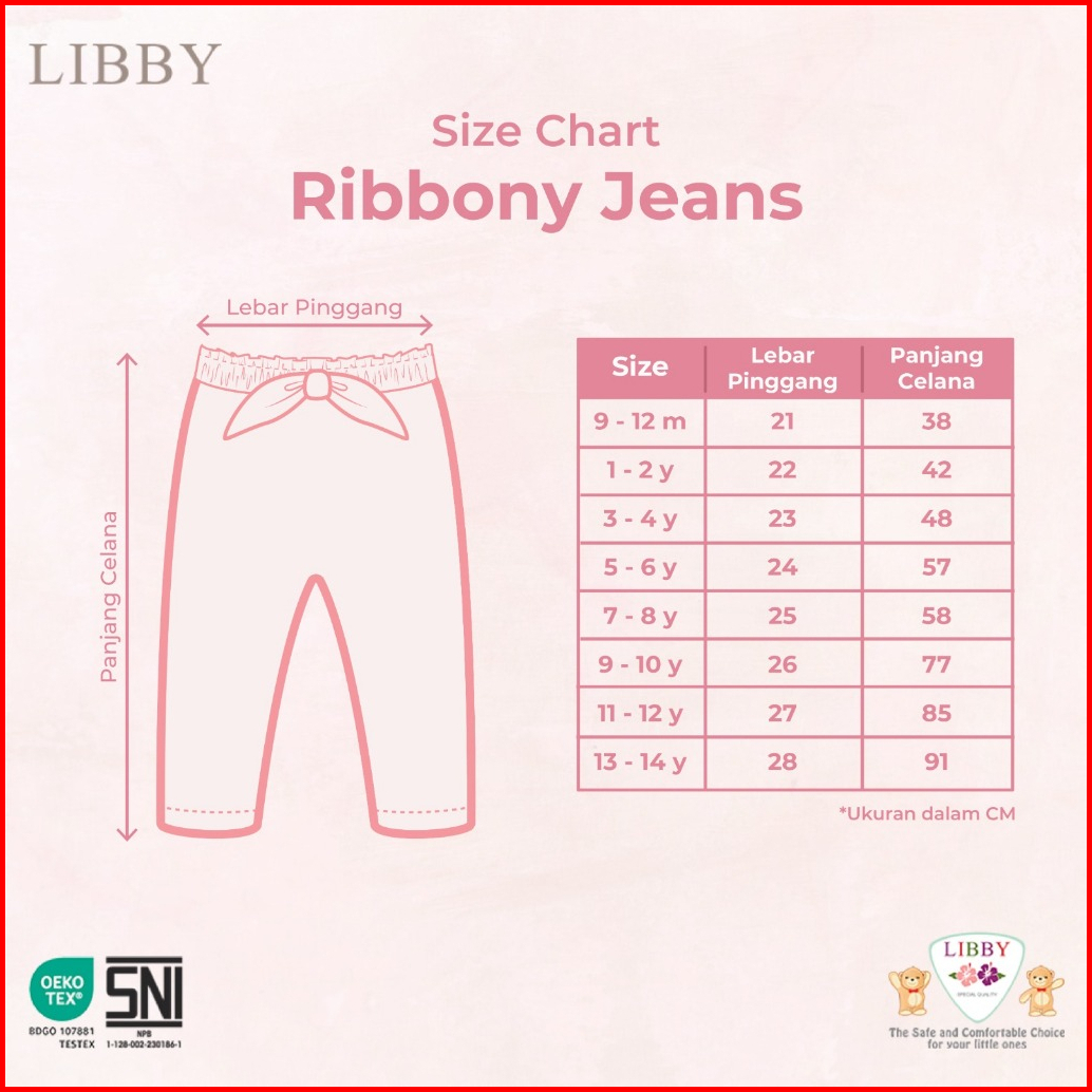 Libby Celana Panjang Anak Perempuan Ribbony Lovely Highwaist Cotton Pants Ribbony Twill Usia 9 Bulan - 14 Tahun 1pcs