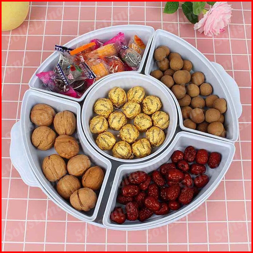 42 Cm Wadah Saji Prasmanan Keramik Kotak Permen Tahan Lembab Yang Disegel Dengan Tutup Kotak Buah Kering Kompartemen Kot