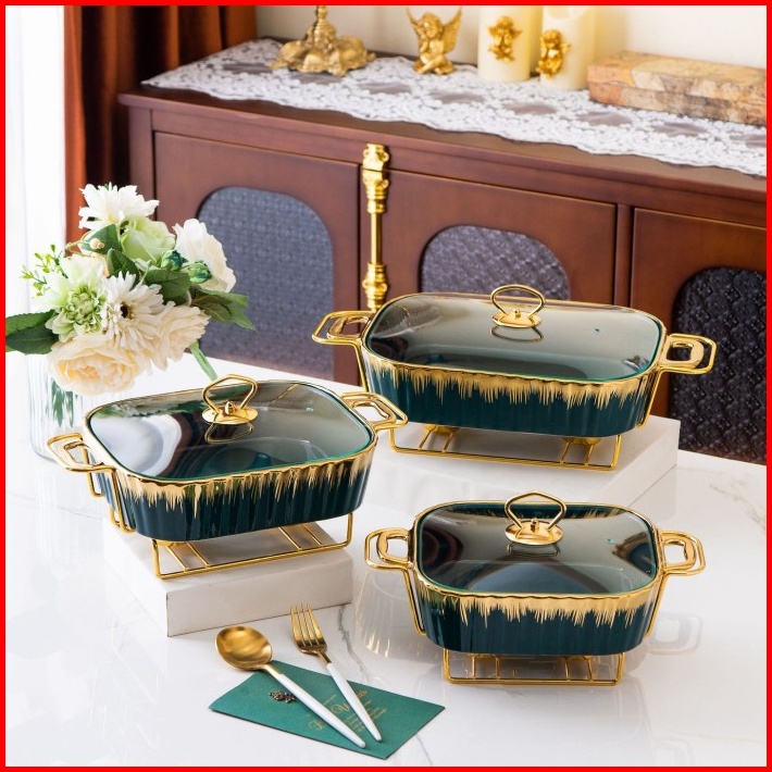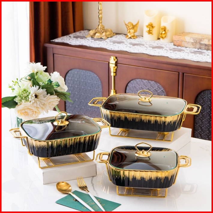 Hoomey Satuan Tempat Prasmanan Keramik Tutup Kaca List Dudukan Besi Wadah Saji Lauk Pauk