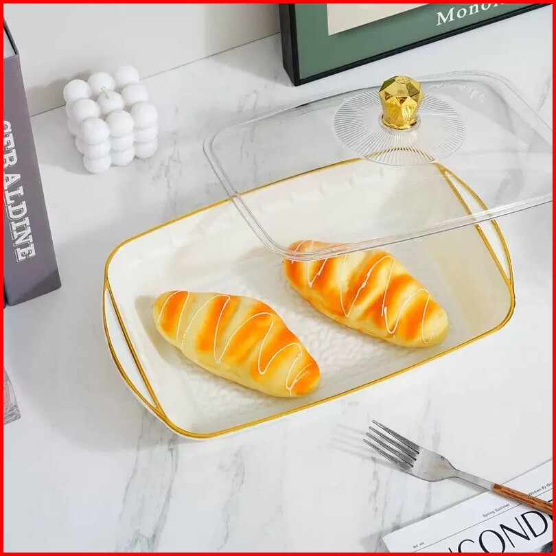Tempat Buah Tempat Roti Aesthetic Nampan Dengan Tutup Transparan Multifungsi Tempat Roti Multifungsi Tahan Lama