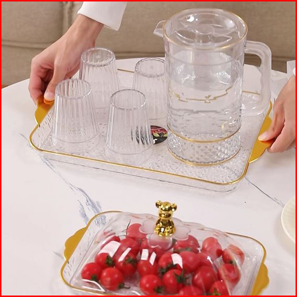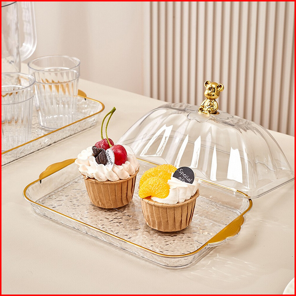 Food Tray Set Nampan Transparan Aesthetic Dengan Tutup Baki Mewah Serving Platters Nampan Saji Handle Wadah Buah Hi C120