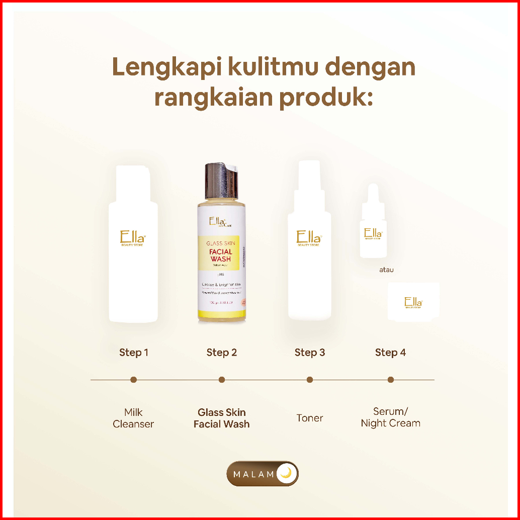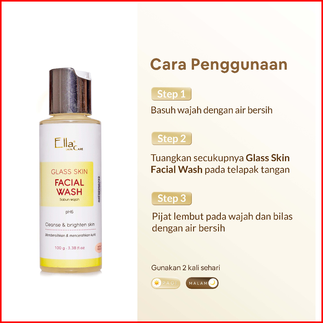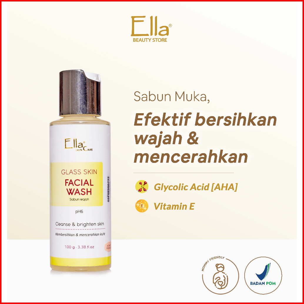 Ella Skincare Glass Skin Facial Wash With Glycolic Acid Vit E Ph 6 - Kulit Cerah Glowing