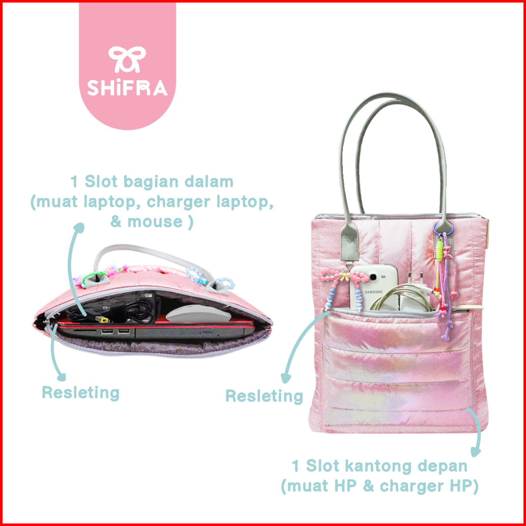 Shifra Tas Laptop Tali Pundak 15 Inch Embossed Kantong Depan Metalic Tali Makrame
