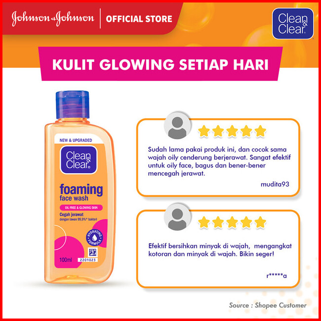 Clean Clear Foaming Face Wash Sabun Cuci Muka Pembersih Wajah 100ml - Isi 2