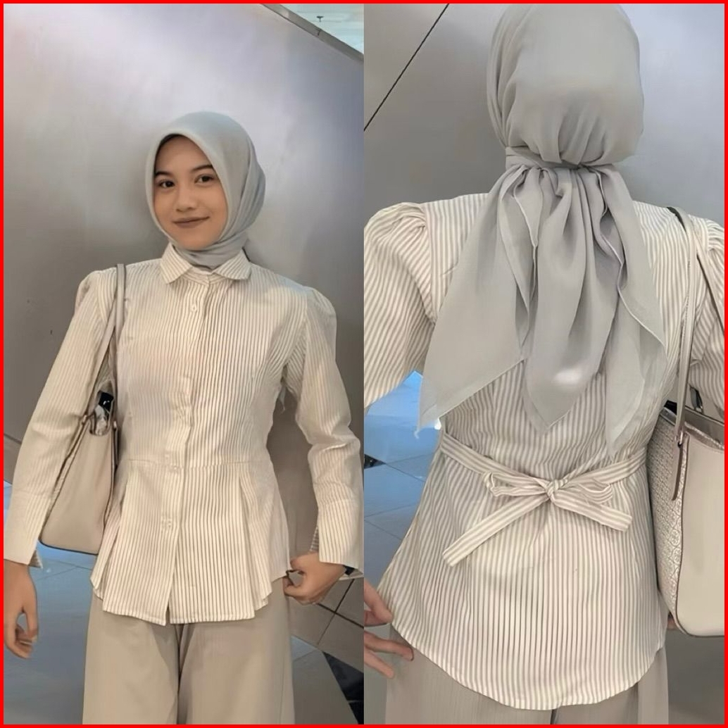 Kemeja Stripe Rempel Fit Body Wanita Casual Daily Formal Katun Nyaman - Baju Kantor Casual Elegan